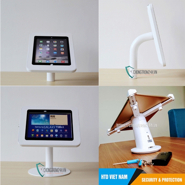 Giá đỡ chống trộm, khóa máy tính bảng HTD chúng tôi mang lại một giải pháp trưng bày tối ưu hiện đại với nhiều mẫu mã mới nhất hiện nay, mang đến cho bạn phong cách trưng bày tinh tế và lịch lãm nhất theo các thiết kế tiêu chuẩn Châu Âu, Giá đỡ máy tính bảng HTD được thiết kế với hộp kim loại cao cấp để bao bọc những chiếc máy tính bảng, ipad một cách chắc chắn và an toàn nhất.