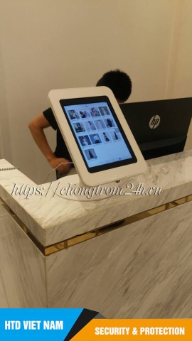 Giá đỡ máy tính bảng, ipad tại cửa hàng thời trang tại Hàng Bài - HN